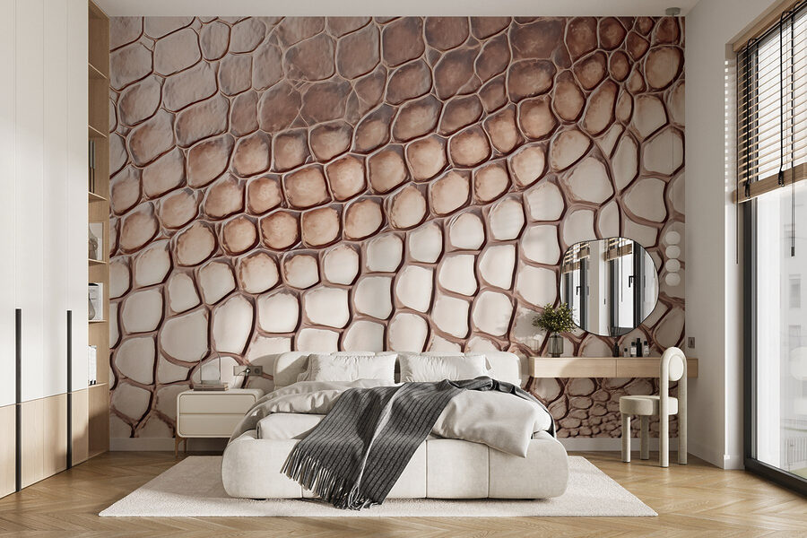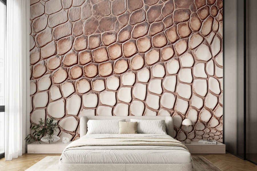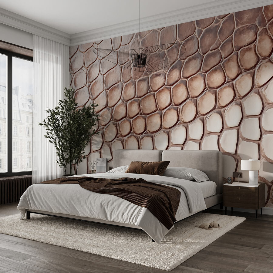 Transforme o seu espaço com o mural de parede arrojado e intrigante com um padrão de pele de réptil. Imagine entrar numa sala que parece um pouco selvagem, mas surpreendentemente acolhedora. Este design acrescenta um toque inesperado, fazendo com que as paredes se destaquem com personalidade. Perfeito para uma parede de destaque numa sala de estar ou mesmo num espaço de trabalho criativo, convida a olhares curiosos e elogios.