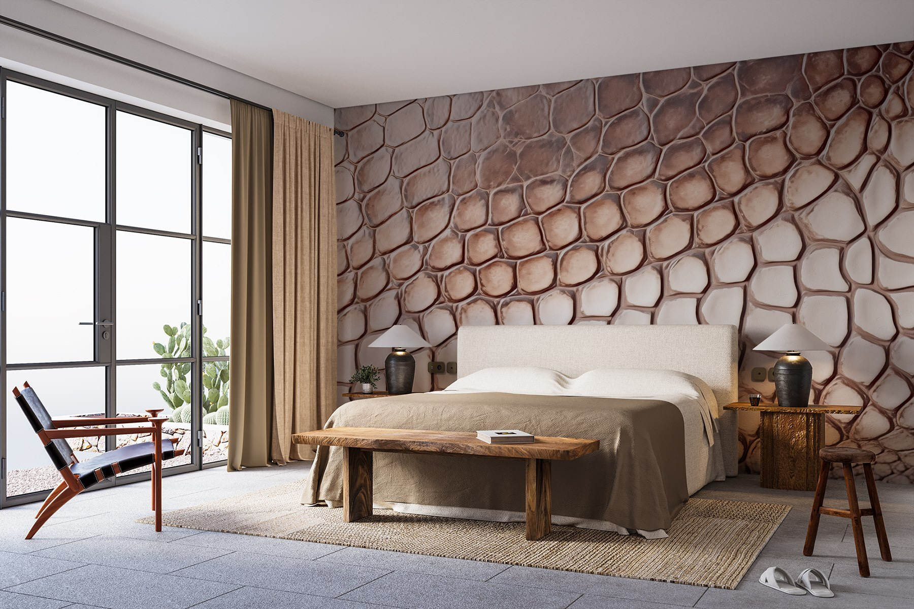 Transforme o seu espaço com o mural de parede arrojado e intrigante com um padrão de pele de réptil. Imagine entrar numa sala que parece um pouco selvagem, mas surpreendentemente acolhedora. Este design acrescenta um toque inesperado, fazendo com que as paredes se destaquem com personalidade. Perfeito para uma parede de destaque numa sala de estar ou mesmo num espaço de trabalho criativo, convida a olhares curiosos e elogios.