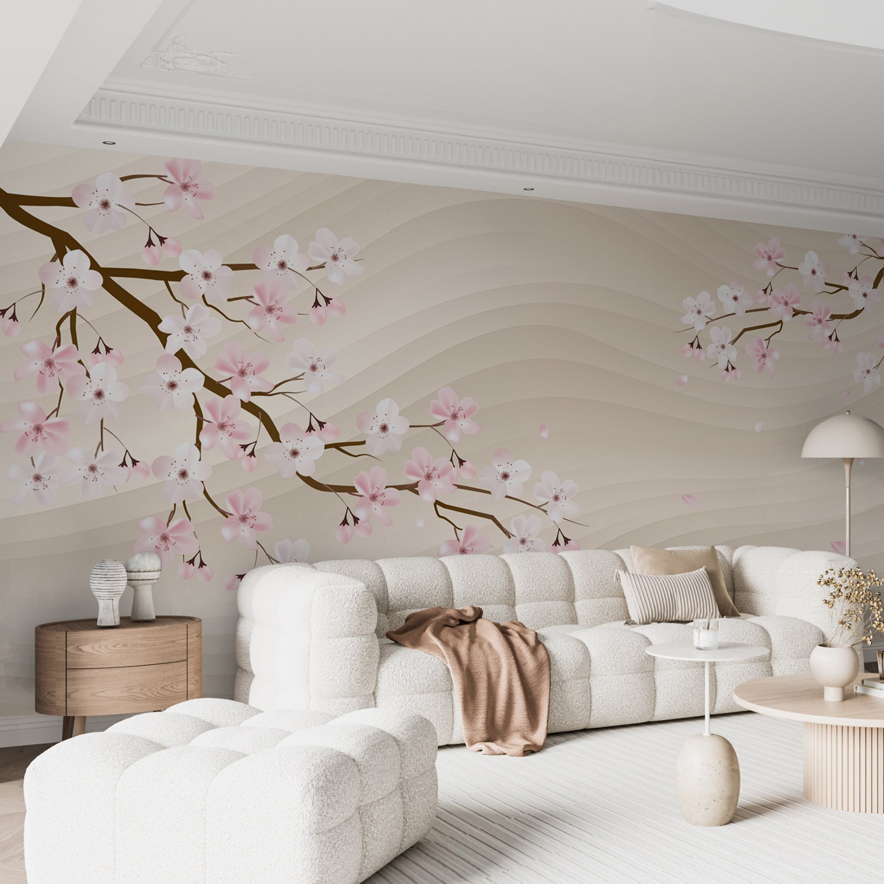 Transforme qualquer espaço num retiro sereno com este encantador mural de um ramo de árvore adornado com delicadas flores brancas e cor-de-rosa. Imagine entrar no seu quarto e sentir instantaneamente uma brisa suave e o suave aroma da primavera – este mural traz essa vibração calmante diretamente para as suas paredes. O fundo fluido acrescenta profundidade, dando a sensação de estar a espreitar para um tranquilo jardim japonês, com pétalas a dançar ao vento. Perfeito para salas de estar, quartos ou mesmo para um recanto de leitura acolhedor, cria uma atmosfera convidativa que sussurra: “Fique um pouco”. Quem não gostaria de ficar um pouco mais num local tão tranquilo?