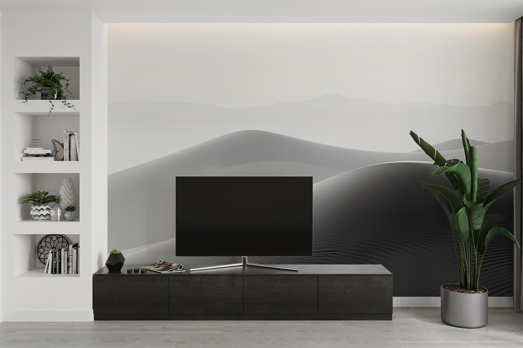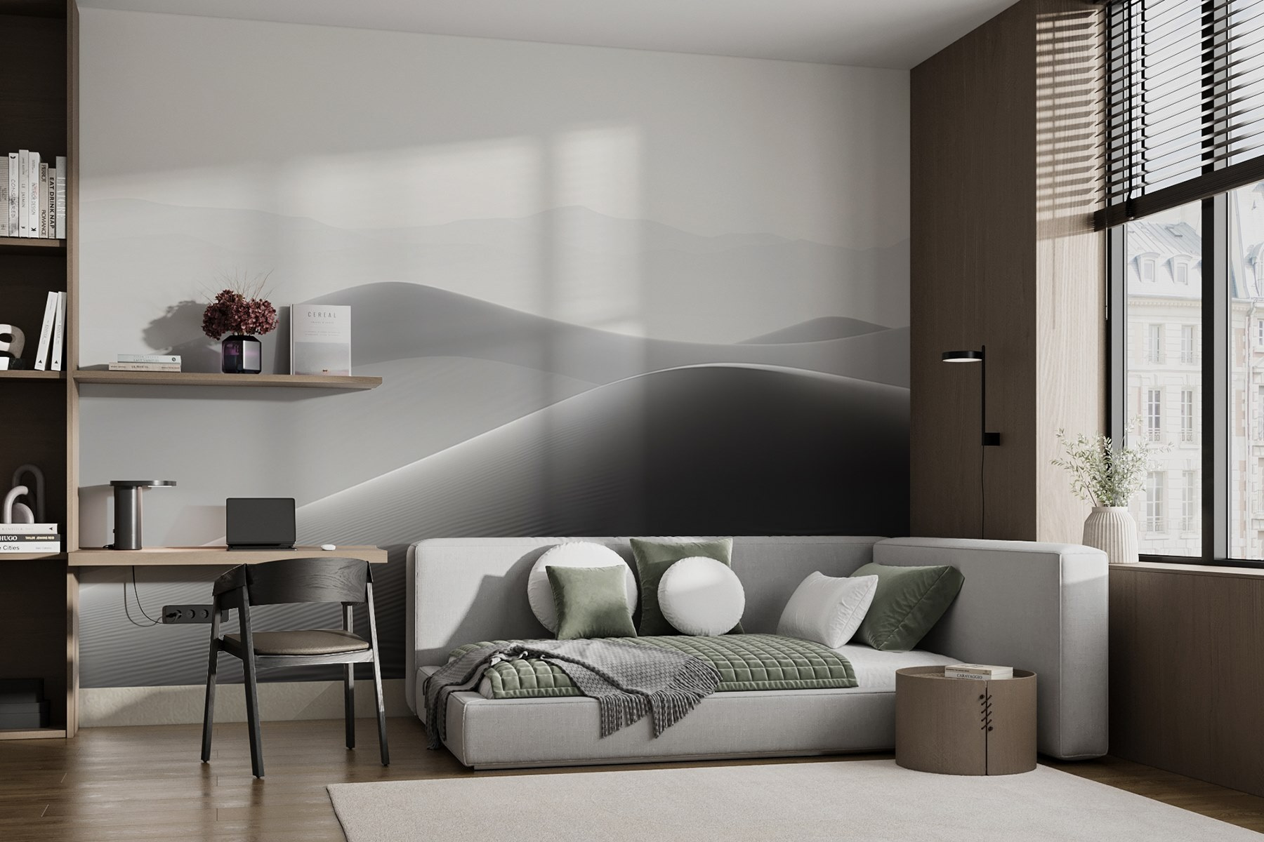 Transforme o seu espaço com o fascínio calmante dos murais de parede Sand Dunes in the Desert. Imagine entrar numa divisão onde estas dunas suaves e elegantes varrem as paredes, dando uma lufada de ar fresco instantânea. É como ter uma fuga serena do deserto mesmo em casa. As curvas suaves e os tons subtis criam uma suavidade visual, perfeita para serões acolhedores ou conversas estimulantes com amigos.