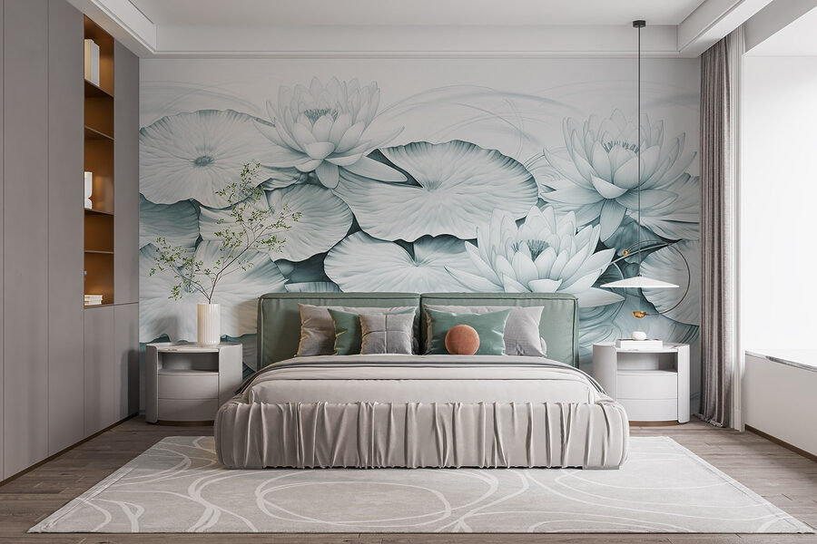 Transforme o seu espaço com a beleza serena deste mural de parede com um belo grupo de nenúfares e folhas delicadas. É como trazer um lago tranquilo diretamente para o seu quarto – perfeito para sonhar acordado ou apenas desfrutar de um momento de tranquilidade. Imagine-se a afundar-se na sua cadeira favorita, com uma chávena de chá quente na mão, enquanto os verdes e brancos suaves o envolvem como um abraço suave. Este mural é ótimo para iniciar conversas, quer seja sobre a natureza ou sobre a sua última obsessão por livros. É descontraído mas cativante – tal como uma tarde preguiçosa à beira da água.