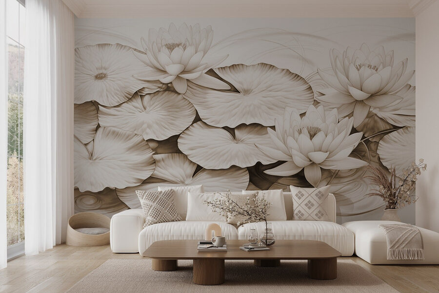 Transforme qualquer divisão com este mural encantador que apresenta delicados nenúfares e nenúfares requintados. Imagine entrar no seu espaço e sentir-se como se tivesse entrado num lago sereno, com reflexos suaves e ondas suaves. É como se a calma da natureza estivesse apenas a uma parede de distância. Perfeito para aqueles que anseiam por uma vibração tranquila, este mural traz uma fatia de paz – talvez até inspiração para um futuro sonho acordado. Subtil mas marcante, dança lindamente com a luz, evocando uma nostalgia acolhedora. Um início de conversa perfeito, ou simplesmente um pano de fundo pacífico para momentos tranquilos.