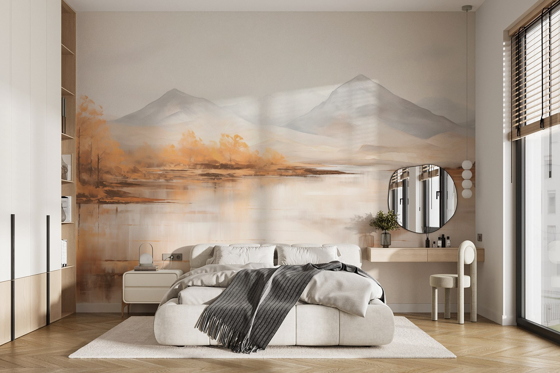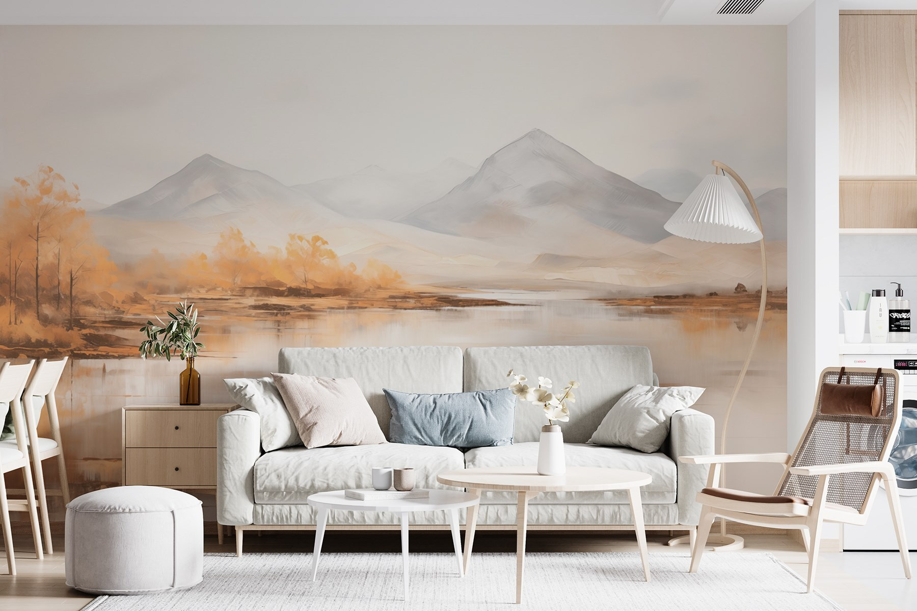 Transforme uma parede numa fuga serena com este mural que apresenta águas tranquilas e montanhas distantes. É como trazer um pedaço da natureza para dentro de casa – imagine beber café enquanto contempla uma paisagem pitoresca, sentindo o stress a desaparecer. Os tons suaves da aguarela têm um efeito calmante, perfeito para cantos acolhedores ou mesmo para aquela parede que só precisa de alguma personalidade. Os amigos vão perguntar-lhe onde encontrou tal joia, e mal sabem eles que é tão simples como um mural. É quase como ter umas mini-férias em casa, sem a confusão da viagem!