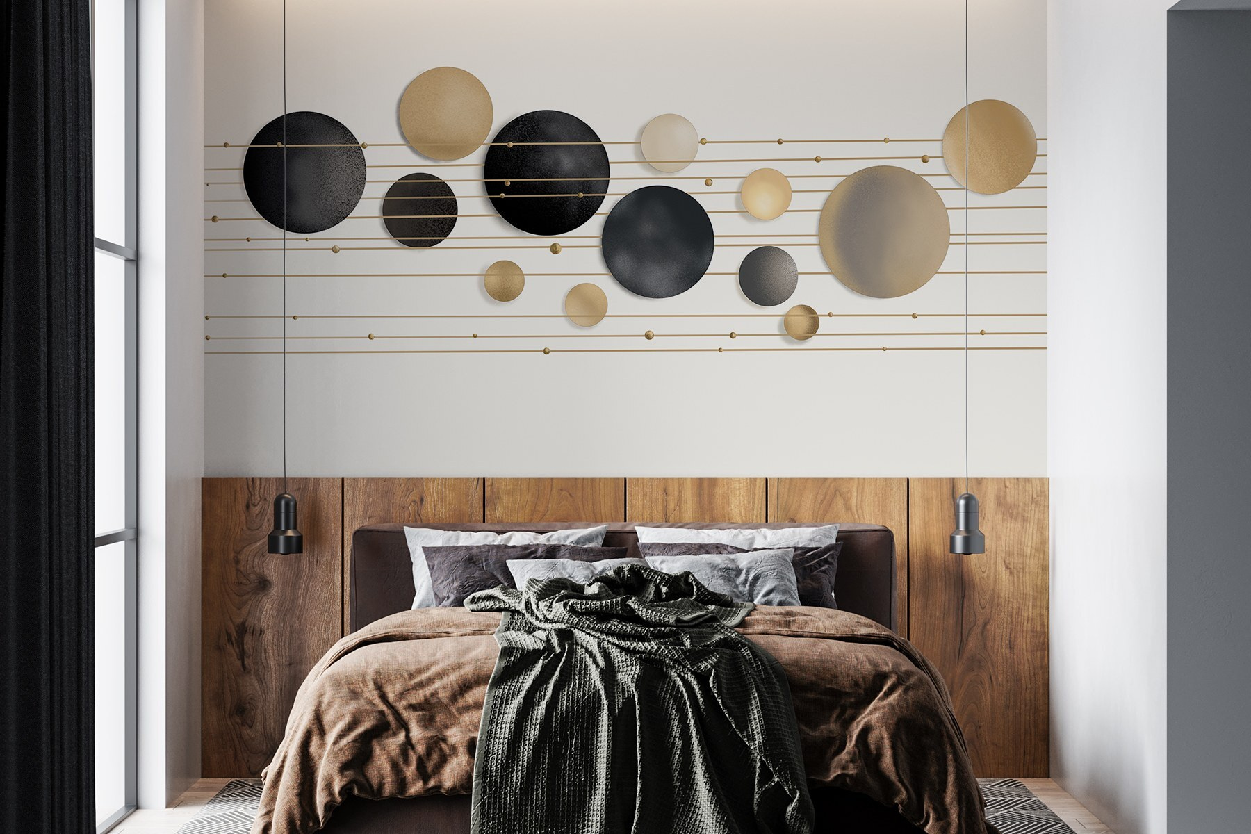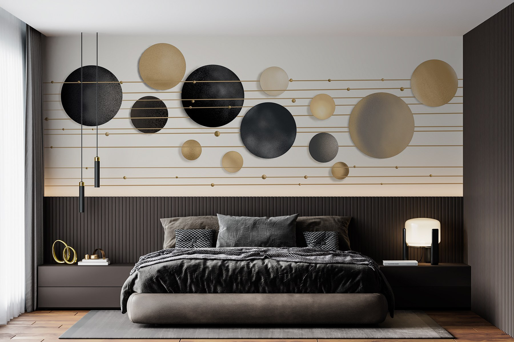 Transforme o seu espaço de uma forma que desperte alegria! Este mural, que apresenta uma mistura divertida de círculos e linhas, acrescenta um toque artístico que fará com que toda a gente se surpreenda. É como ter uma peça de arte moderna na sua parede – perfeito para aquelas salas de estar acolhedoras ou escritórios chiques que precisam de um pouco de personalidade. Imagine os convidados a entrarem, a olharem para o mural e a dizerem: “Uau, isso é apelativo!” A mistura de formas cria um ritmo que quase o faz sentir como se fosse apanhado numa dança. É subtil mas marcante – um deleite visual que traz calor sem estar demasiado na cara. Perfeito para quem gosta de um toque de capricho!