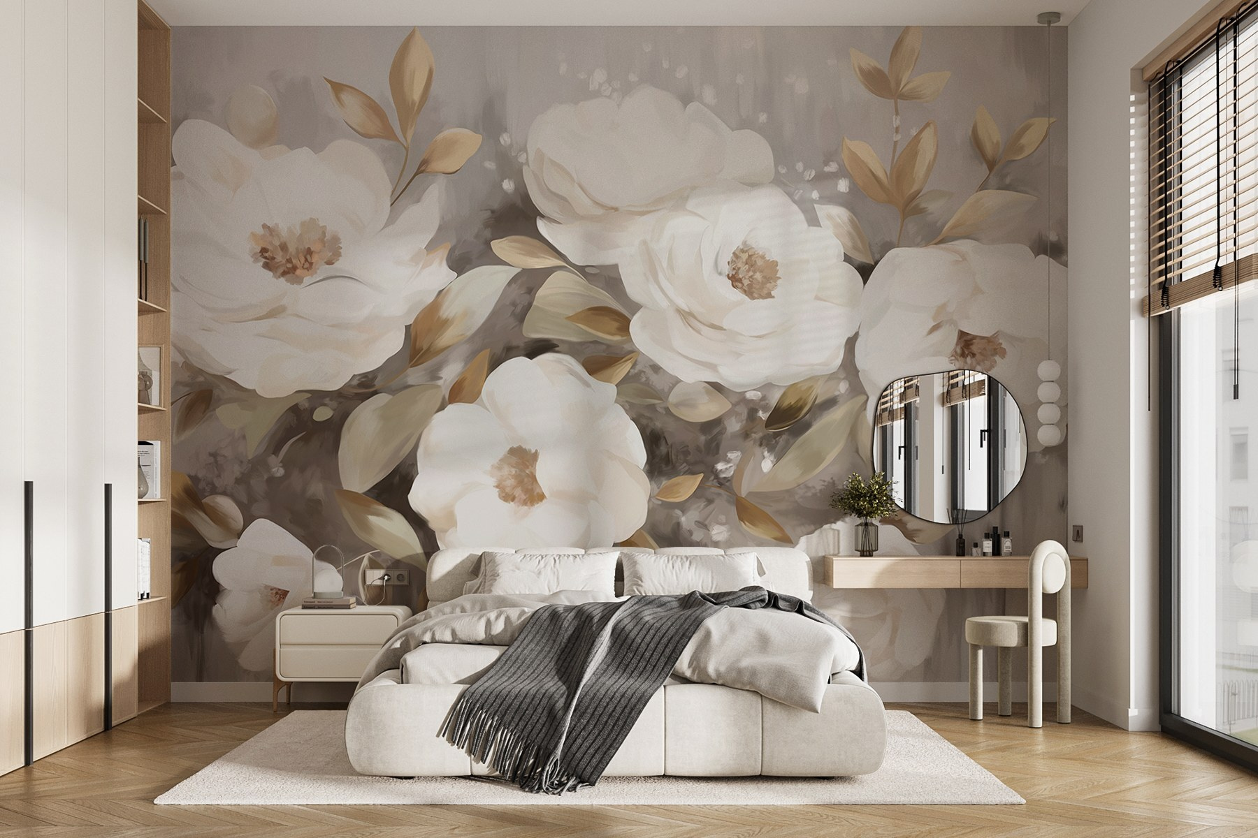 Transforme o seu espaço com este deslumbrante mural de parede com elegantes flores brancas e folhas suaves e delicadas. É como trazer um jardim sereno diretamente para a sua sala de estar. Imagine-se sentado com o seu café da manhã, a olhar para estas flores e a sentir instantaneamente uma onda de calma. As cores suaves sussurram paz, tornando qualquer divisão mais convidativa, quer se trate de um recanto de leitura acolhedor ou de um corredor renovado. Além disso, é muito fácil de instalar – basta descascar e colar. Perfeito para quem gosta de uma mudança sem muita confusão. É um encanto floral, sem o regador!