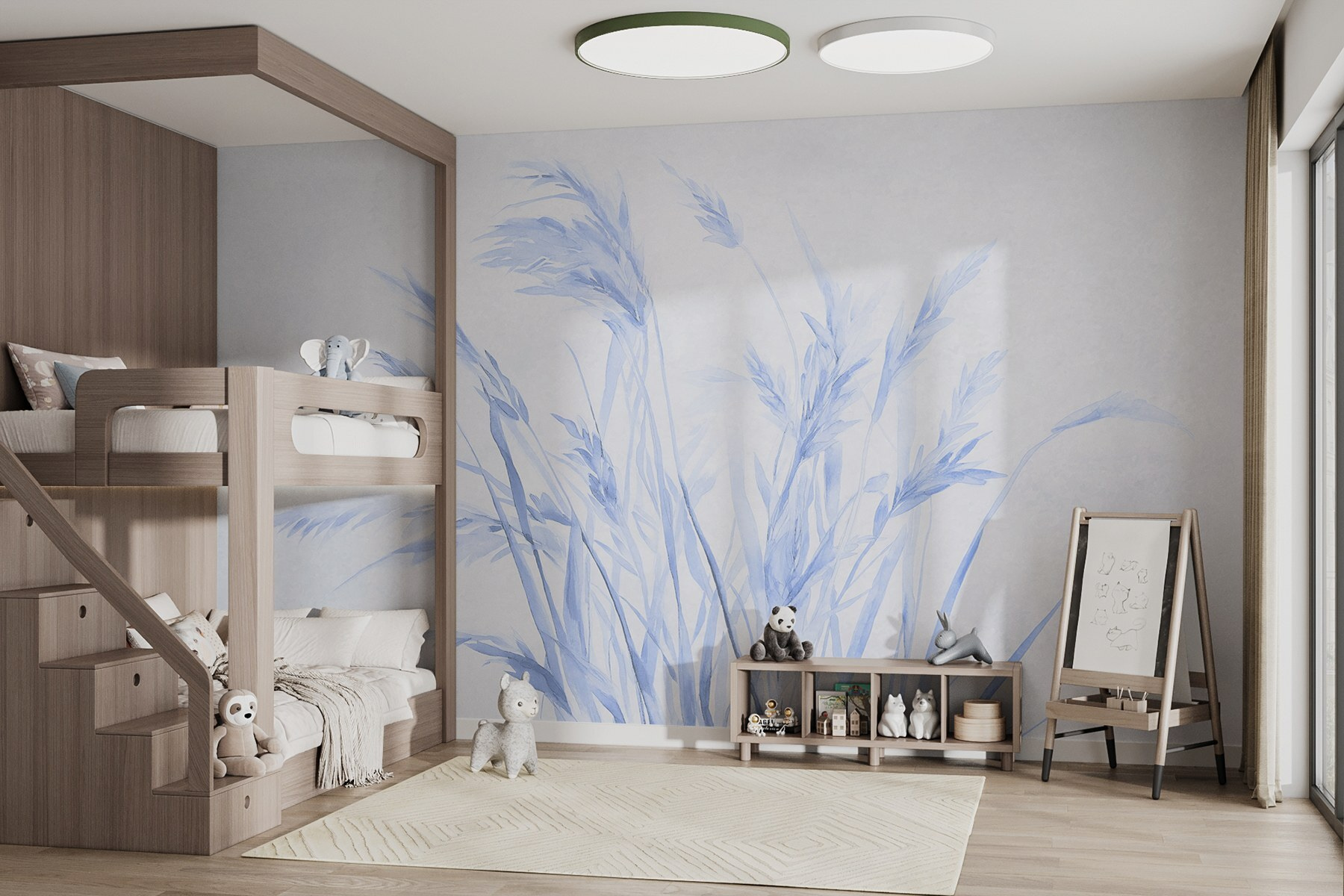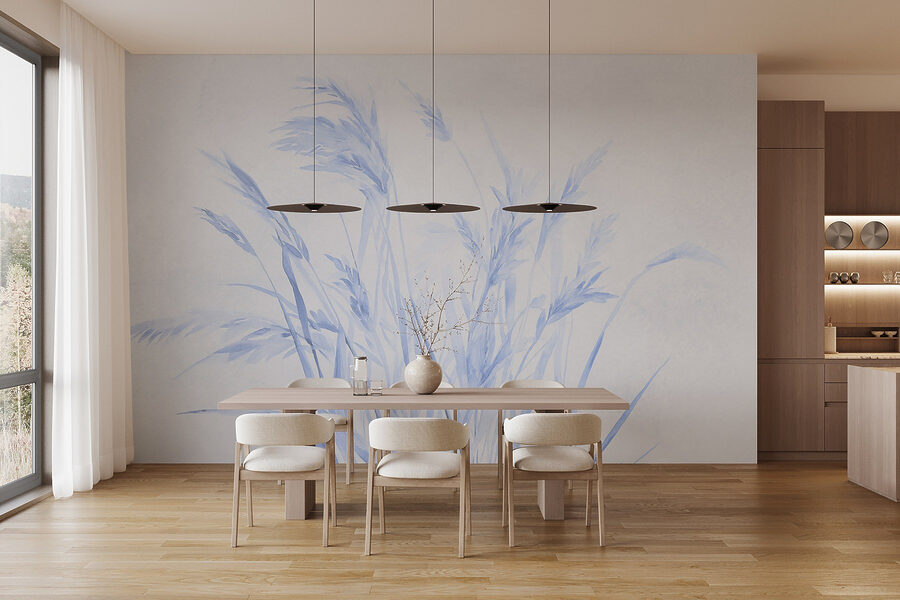 Imagine entrar num mundo sereno onde uma brisa suave sussurra através de suaves lâminas de relva – este mural traz essa cena de sonho diretamente para a sua parede. Os tons azuis frios criam uma vibração calma, tornando qualquer espaço mais tranquilo. Imagine-se a relaxar depois de um longo dia, mergulhando nos visuais calmantes, como se estivesse a descansar num prado relvado, só você e o seu livro favorito. É perfeito para salas de estar ou recantos de leitura acolhedores. Este mural não se limita a revestir as paredes; dá vida à sua casa, convidando ao calor e ao relaxamento.