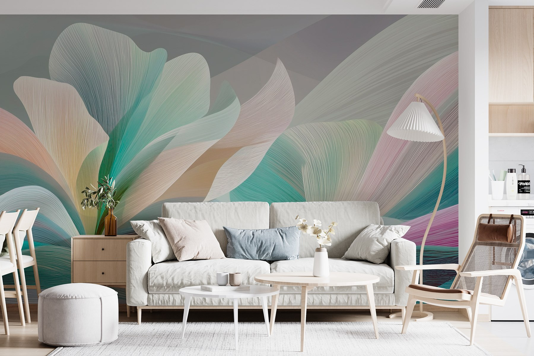 Mergulhe num mundo de tons suaves e padrões fluidos com este mural de parede cativante. É como ter uma brisa suave no seu espaço de vida – suave e refrescante. Imagine-se a acordar, a espreguiçar-se e a sentir essa vibração serena a passar pelas suas paredes. As cores são calmas e convidativas, atingindo um equilíbrio entre o relaxamento e a elevação. Os amigos farão uma pausa a meio da conversa, olhando para estas ondas de sonho, e talvez até perguntem se começou a pintar. Transforme uma divisão aborrecida num retiro acolhedor com um mural que sussurra elegância e facilidade. Além disso, é o pano de fundo perfeito para noites aconchegantes ou dias de sol brilhante, misturando-se com o ambiente sem esforço.